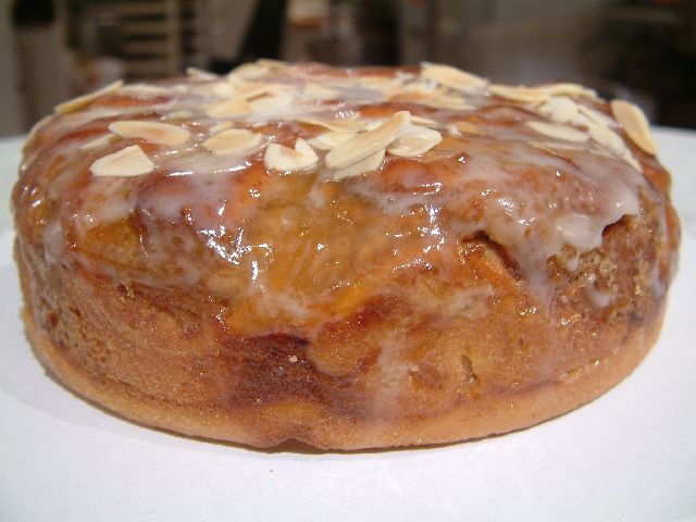 Rosekuchen - a sweet yeast dough cake, with swirls of sweet almond paste running though the dough.
