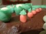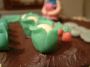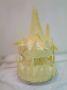 A highly abstract cake made with large triangular shards of white chocolate and white chocolate shavings.