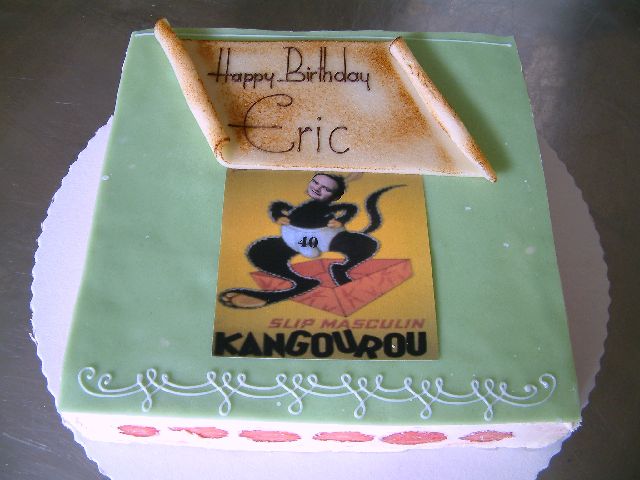 A fraisier birthday cake for Eric, owner of French restaurant Les Bistrot des Arts, Edinburgh