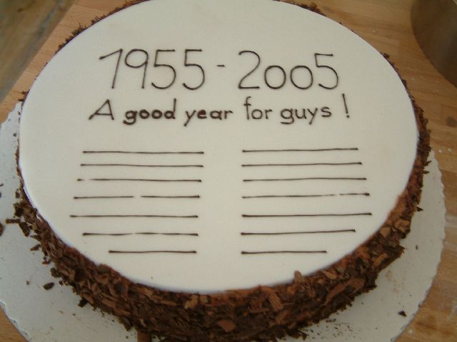 Our ever popular chocolate trufflecream cake decorated with dark chocolate shavings round the side and covered on top with soft white icing and an inscription.