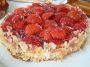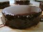 Sachertorte drying on a marble worktable after being covered with rich chocolate fondant