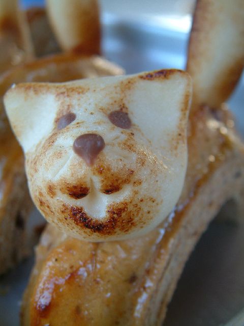 A Halloween cat made of a Baumkuchen body with sculpted marzipan head and tail