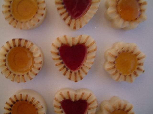 A variation on Königsberger Marzipan - shaped marzipan, filled with fruit conserve.