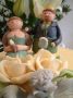 Close up of the top of a novelty wedding cake.